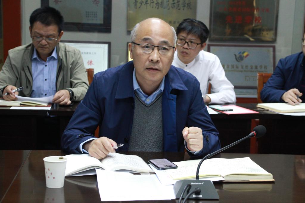 会上,校长万军传达学习了总书记系列讲话精神,他从讲话背景、精神起源和精神内涵三个方面带领大家一起进行了深入学习。副校长陈建明、孙海如分别就贯彻新发展理念,推动学校高质量发展和坚决抵御防范宗教向校园渗透做了学习体会交流。