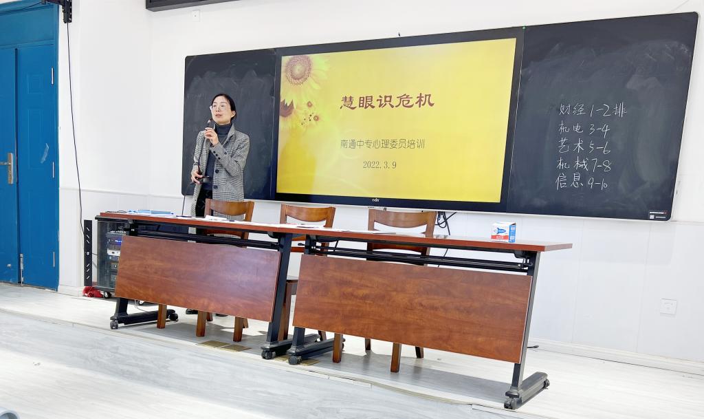 周老师以“慧眼识危机”为主题,阐释了心理委员需要承担的角色和工作责任,希望心理委员认清角色定位,学会“识别心理危机”,关注“心理异常人群”,在日常交往中成为同学们的知心朋友,在学习生活中关注存在心理危机的同学,为有需要的同学提供力所能及的心理支持和帮助。