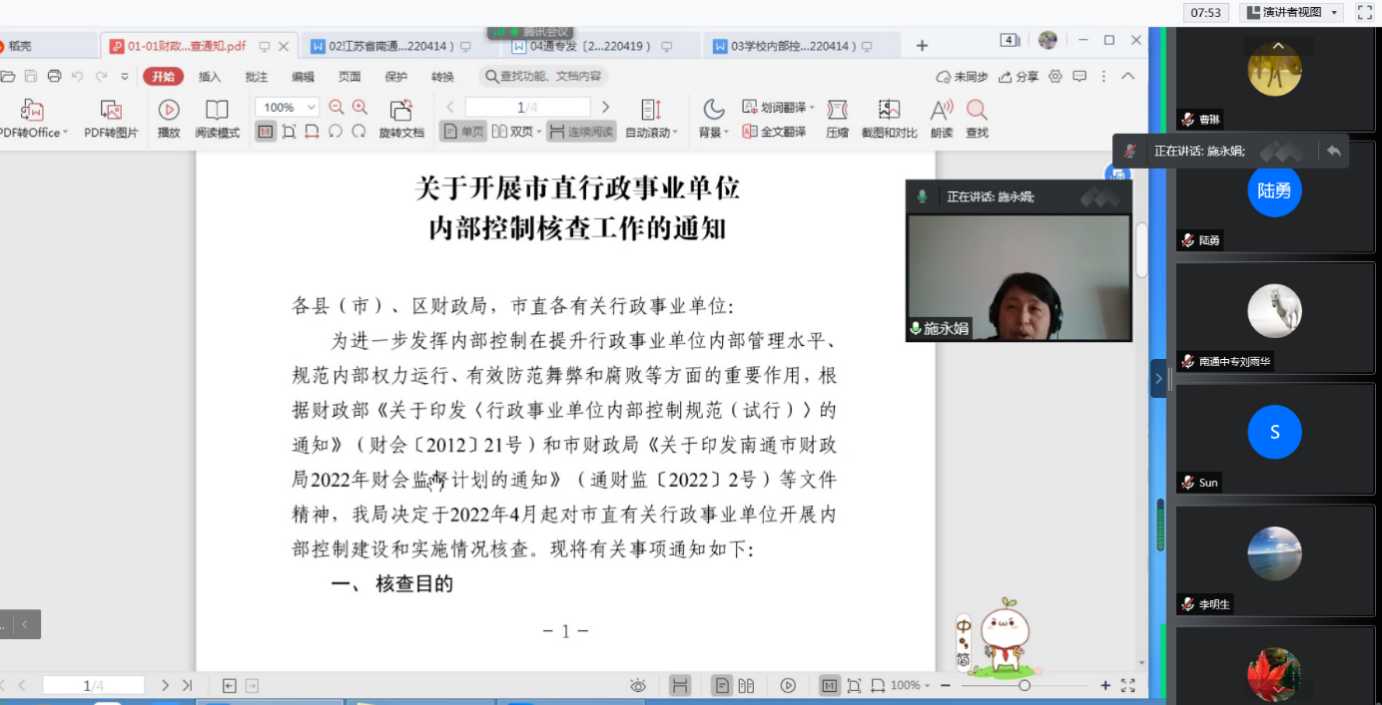 4月20日下午,南通中专召开学校内部控制工作会议,校内控工作领导小组全体成员和相关工作组成员参加。会议由副校长施永娟主持,以线上方式召开。
