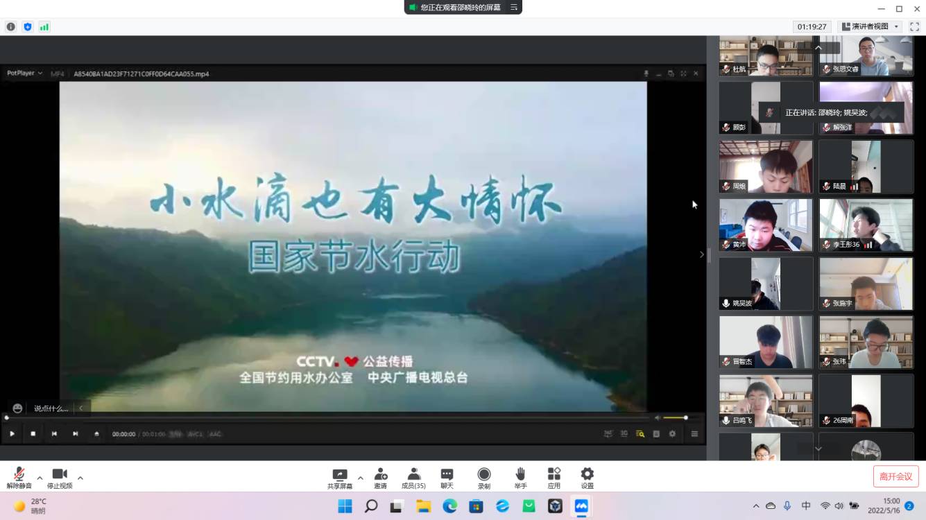 5月16日,正值第31届全国城市节约用水周,我校各班级召开了线上节约用水主题班会。