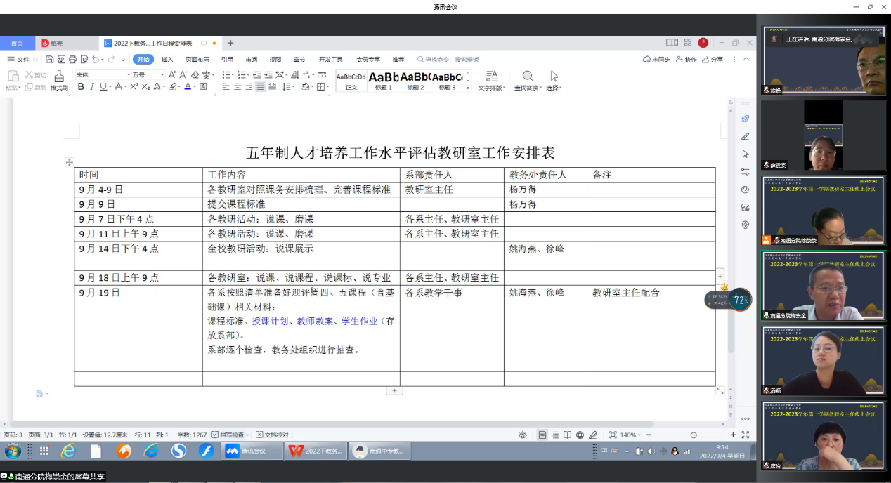9月4日上午,学校召开了新学期全体教研室主任线上会议,布置新学期教研室工作和迎评准备工作。