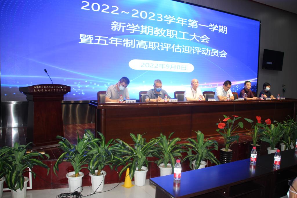 9月8日下午,学校在报告厅召开全体教职工大会,全面部署2022-2023学年第一学期工作,对即将到来的五年制高职人才培养工作水平评估现场考察进行再动员。校领导班子成员出席会议。会议由校长万军主持。