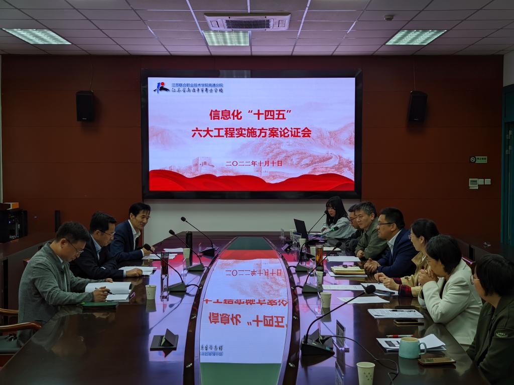 10月10日上午,我校在荣誉室召开信息化“十四五”六大工程实施方案论证会。南通市市域治理现代化指挥中心主任、大数据管理局局长李俊,南通大学信息化中心原主任管图华和我校信息工程系主任朱延庆应邀担任论证专家,校长万军出席会议。会议由信息技术中心主任陆瑞明主持。