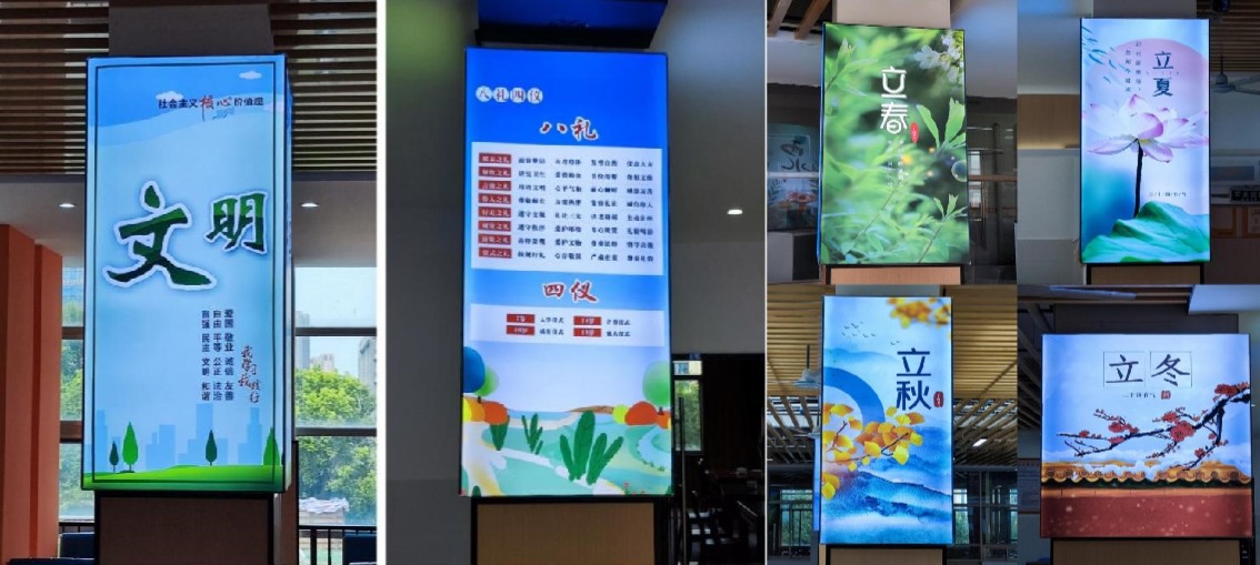 一日三进的食堂,自然也是学生思政教育的重要阵地。食堂制作了八礼四仪、社会主义核心价值观等文化墙,张贴了二十四节气海报,倡导文明就餐、节约用餐、自送餐具。同学们在享用美味的同时接受着中华优秀传统文化的熏陶,涵养着讲文明、懂礼貌、有道德的品格。