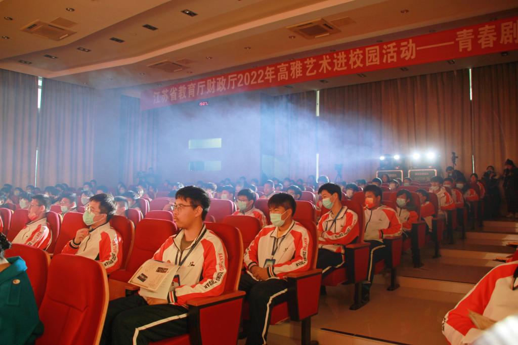 12月5日,由江苏省教育厅、财政厅主办,江苏省少年儿童文化艺术促进会承办的高雅艺术进校园项目——青春剧《野蜂飞舞》走进我校,在我校报告厅上演。万军校长,吴晓进、陈建明副校长等校领导和全校师生观看了演出,项目评估专家南通科技职业学院宣传部赵艳副部长来到现场开展评估。