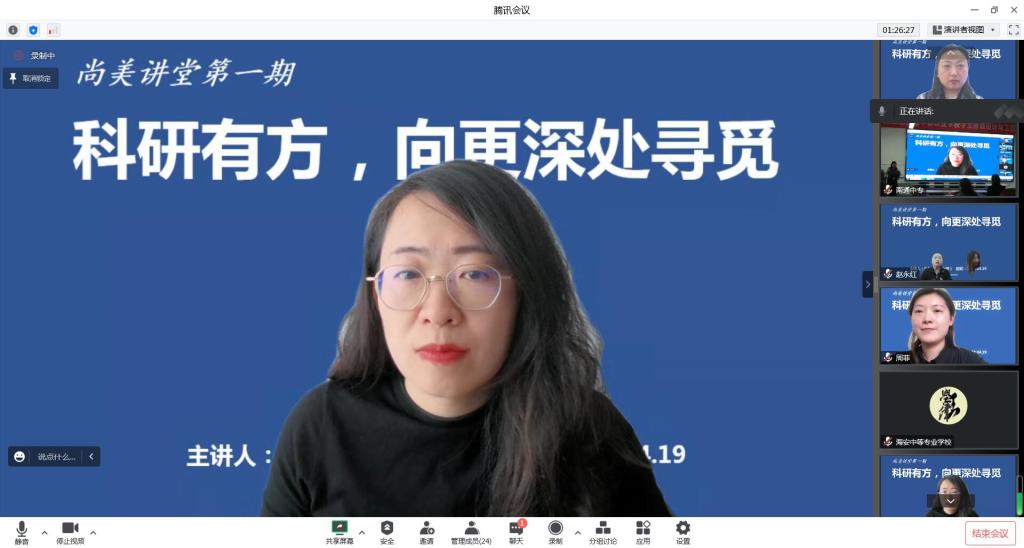 4月19日下午,我校在线举办“第一期尚美讲堂——科研有方,向更深处寻觅”主题学术活动。特邀教育部中华优秀传统文化传承基地副主任,中国艺术人类学学会刺绣专业委员会副主任委员、秘书长,至善青年学者,江南大学设计学院硕士生导师牛犁教授作《服装教师的科研之路——论文写作、项目申报与成果培养》专题讲座。南通市第五届职业教育纺织服装类专业中心组全体成员,南通中专服装艺术、公共艺术教研室全体成员,江苏省职业教育施捷醒目知色服装设计工作室、江苏省职业教育赵永红“服装创艺”名师工作室、江苏省职业教育方琴云裳服装工作室成员及省内外50多位服装专业教师参加。活动由中心组成员、如皋一中专周菲老师主持。