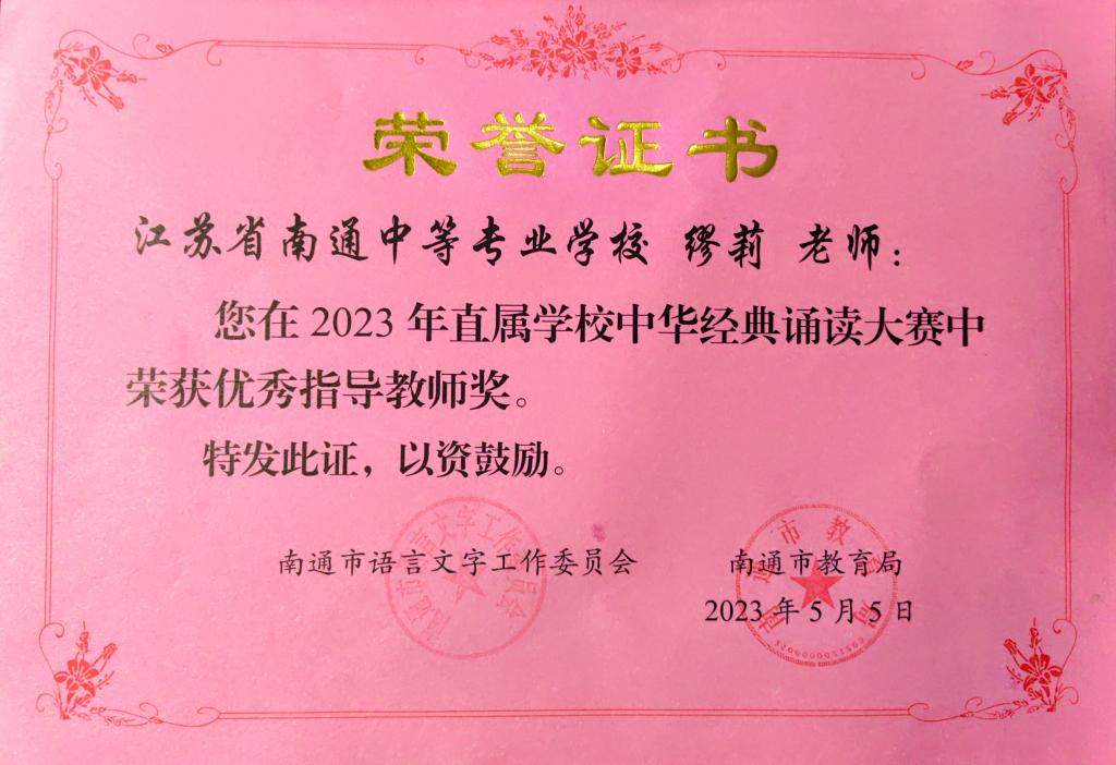 近日,我校杨森炜、曹淳、薛蔡榕、张嘉俊同学的朗诵作品《谁是最可爱的人》在2023年南通市教育局直属学校中华经典诵读大赛中荣获中学生组特等奖。缪莉和周莹老师获优秀指导教师奖。