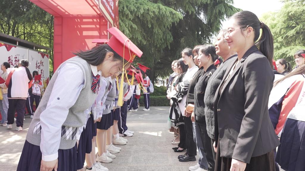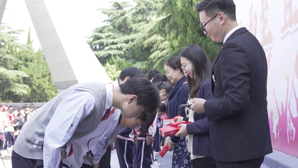 成人仪式上,家长们为21级学子佩戴成人礼帽、互换家书;学生们为班主任老师佩戴向日葵胸针,师生互赠礼物,老师和家长为同学们送上了最深情的祝福。