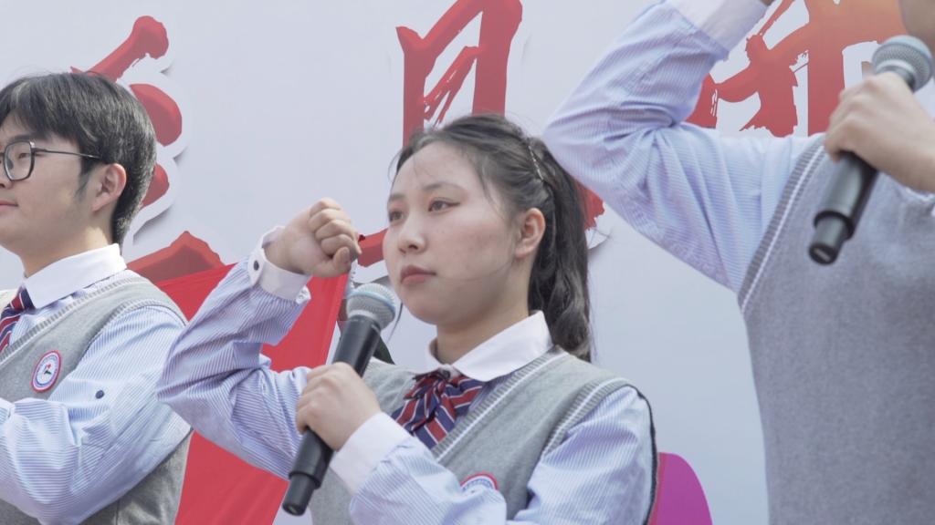 面对国旗,同学们满怀豪情庄严宣誓:以诚心对他人,以孝心对父母;以热心对社会,以忠心对国家。天地为鉴,国旗为证,十八而志,青春万岁!