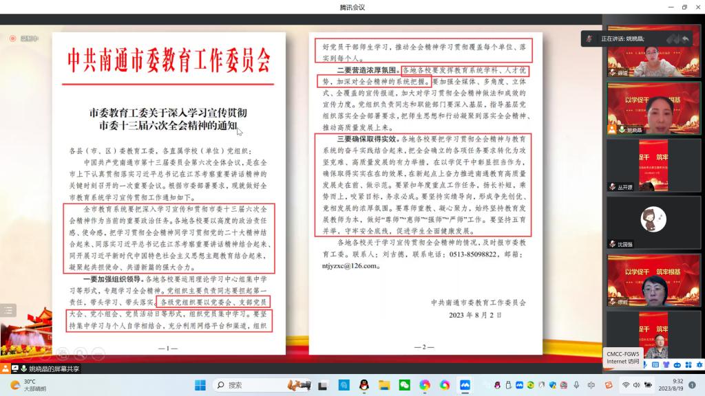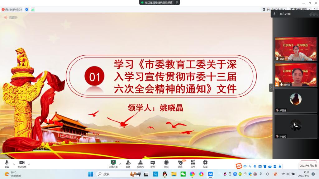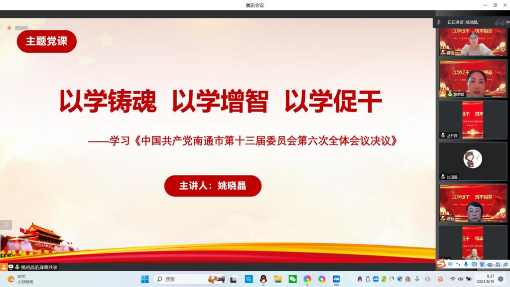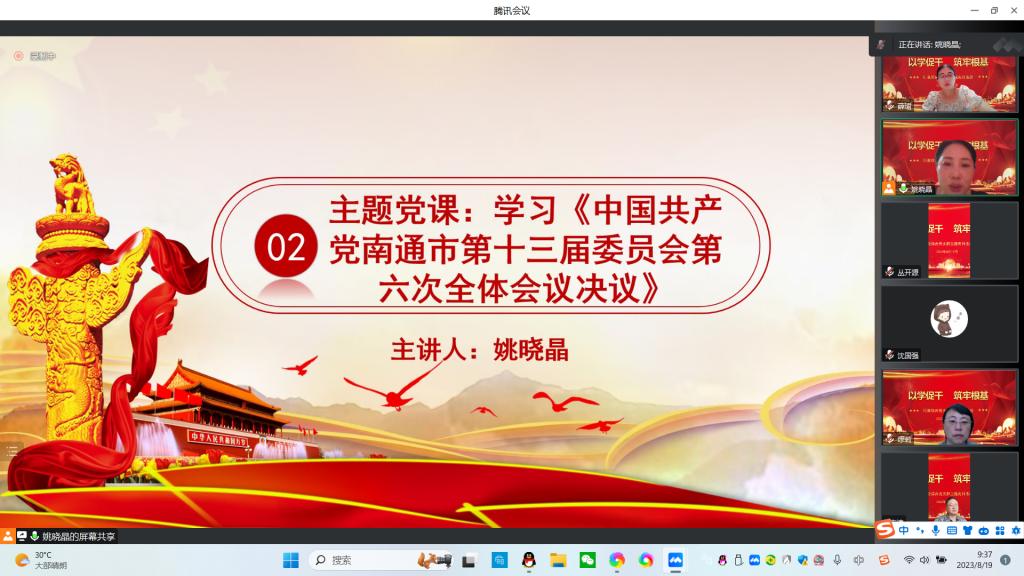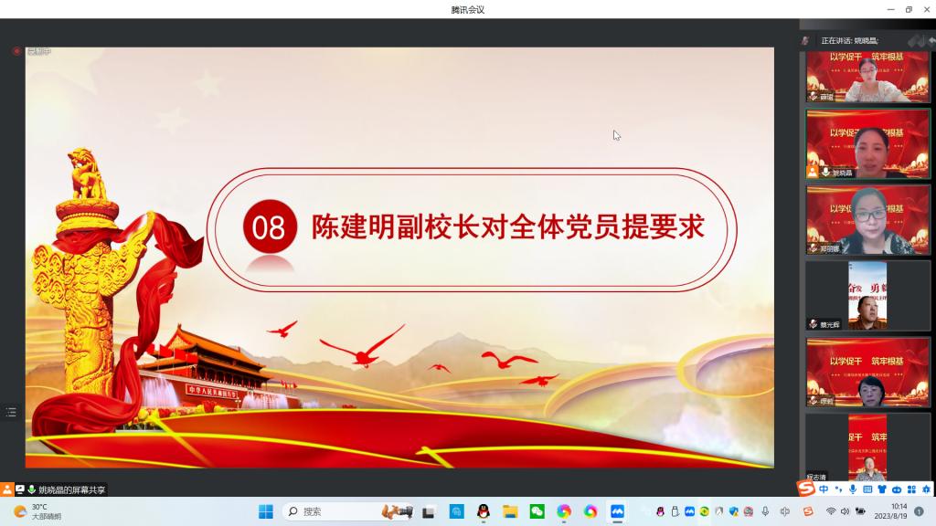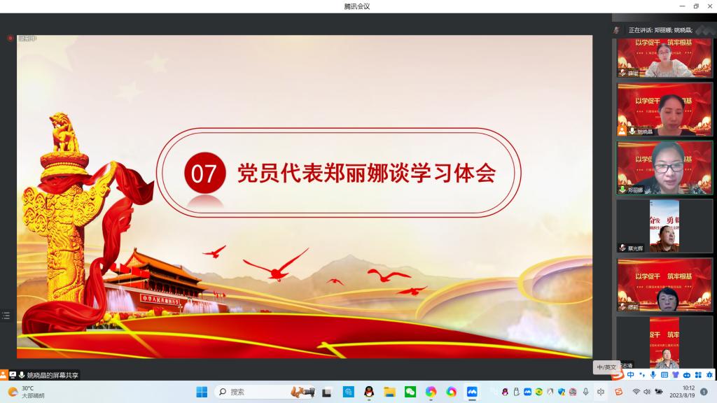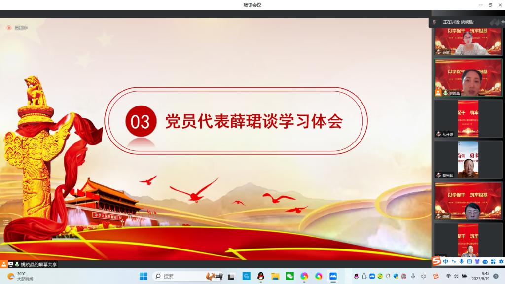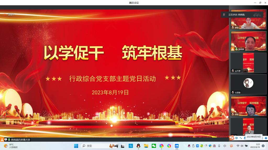 8月19日行政综合党支部通过腾讯会议线上举行“以学促干 筑牢根基”主题党日活动。