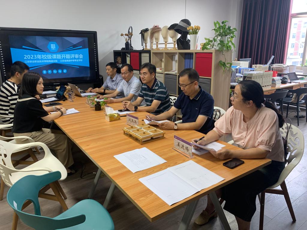 近日,我校在服装汽修实训楼206室召开2023年校级课题开题论证会。南通市教育科学研究院职教研究室刘兵兵主任,南通中专陈建明副校长、刘雨华处长,通州中专高飞副校长、姜进梅处长到会指导,各课题组主持人及核心成员参会。