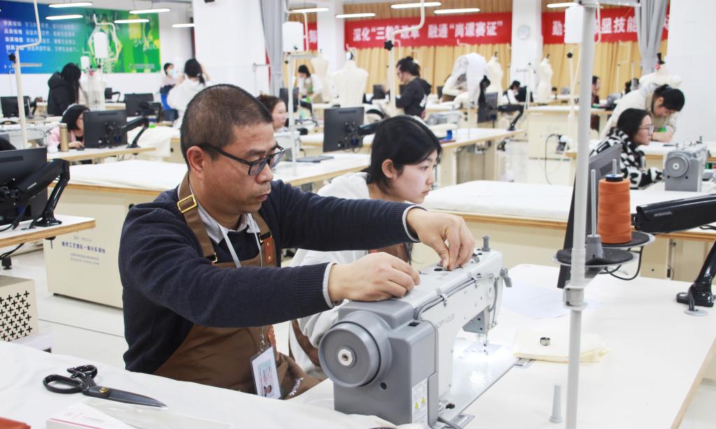 南通中专服装设计与工艺专业带头人、省施捷“醒目知色”名师工作室领衔人施捷在接受采访时表示,学校积极应对国赛、省赛赛制的变化,组建了数支集训团队,通过相互切磋、相互比拼,最终派出由一老一青两名教师和两名学生组成的队伍参赛。集训中,师生发挥各自优势,做高“木桶”的每一块木板,提高队伍整体技能水平;比赛中,分工合作,齐心协力,补齐“木桶”的每一块短板,师生同赛,青蓝辉映,真正起到了以赛促教、以赛促学、以赛促改的作用。