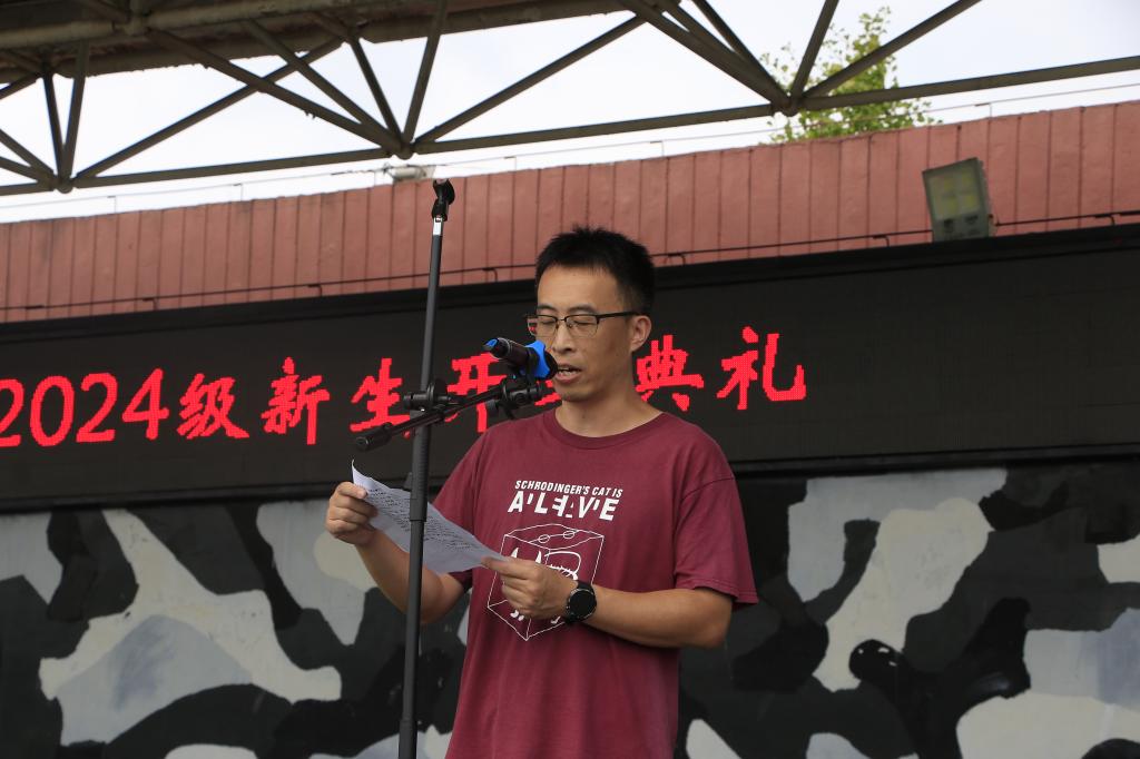 家长代表2452班何陈锐的父亲何建国先生讲话。他希望同学们强健体魄,战胜挫折;尊师敬长,主动学习;志存高远,笃定前行,用坚定的信念,在不断的成长中,为更好的未来赋能。