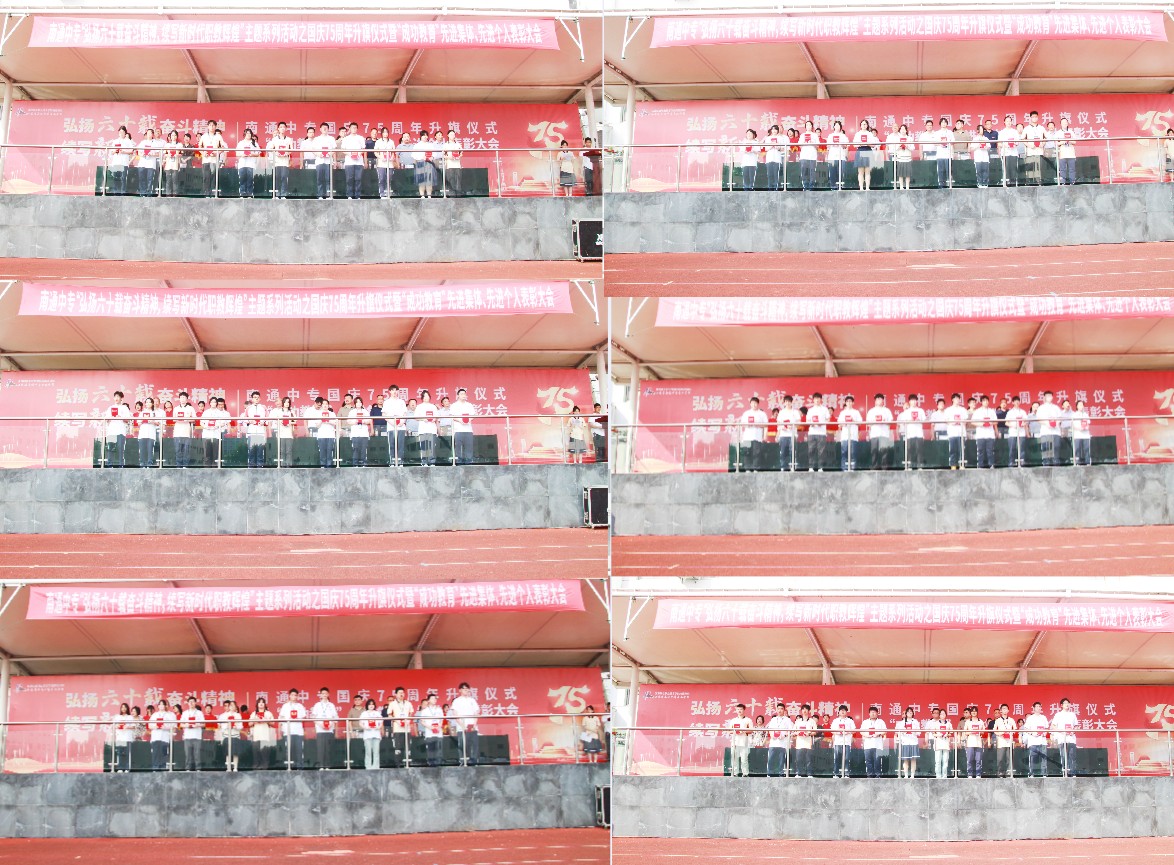 9月30日上午,我校在田径场隆重举行“弘扬六十载奋斗精神,续写新时代职教辉煌”主题系列活动之国庆75周年升旗仪式暨“成功教育”先进集体、先进个人表彰大会。校领导班子成员、校关工委领导和家长代表等在主席台就座,全校师生参加活动。