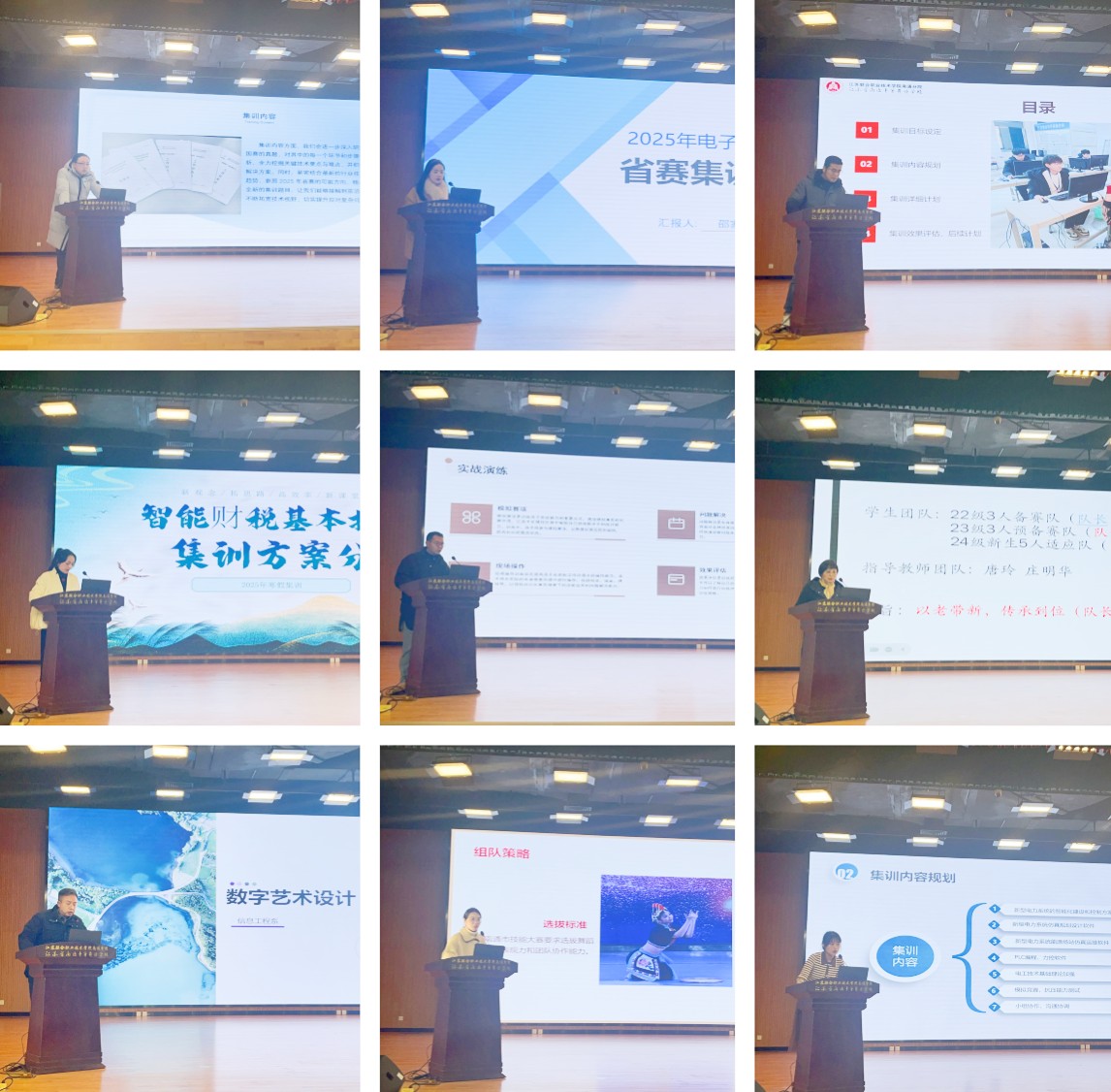动员会上,大家观看了过去一年学校各支技能集训队训练和参赛的视频集锦。教务处姚海燕副处长总结了2024年技能集训队集训、参加市赛的情况,教务处梅崇金处长对2025年寒假集训工作进行了部署。9个市赛优秀团队汇报了寒假集训方案;机电技术系新型电力系统技术与应用团队(国赛银奖)指导教师曹海欧对国赛赛事进行了解读,分享了参赛经验,团队三位参赛选手进行了现场展示。