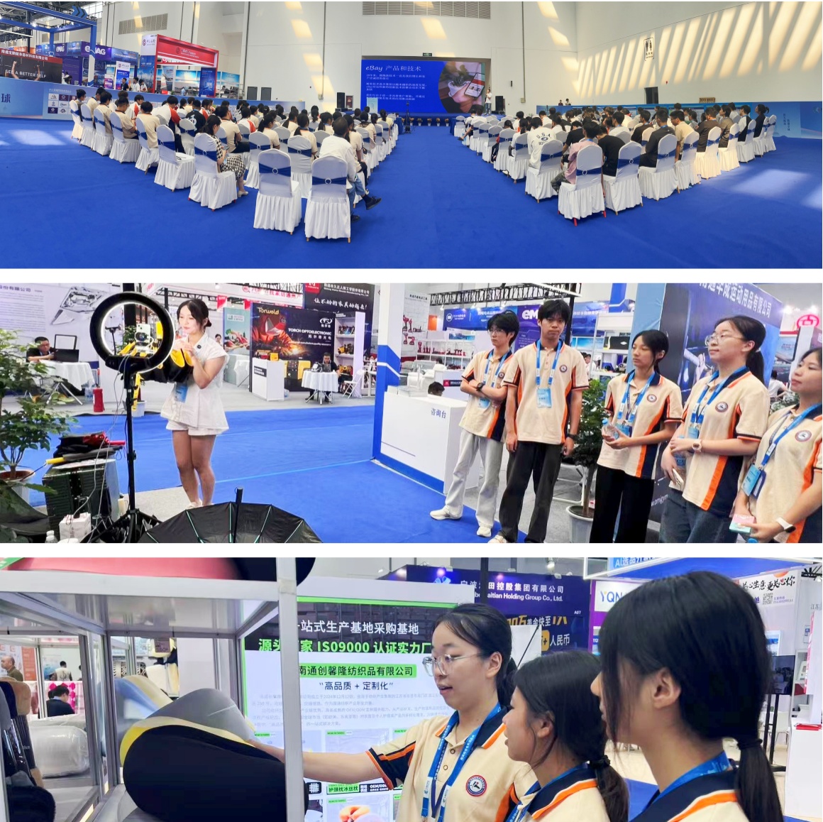 选品会上,来自南通市的几十家跨境电商企业集中展示了最新产品线与行业解决方案。企业代表围绕市场趋势、供应链创新、数字营销策略等议题作了专题报告。学生们认真聆听分享,深入了解了当前跨境电商行业的发展动态、技术应用及南通本地产业带特色,包括家纺、体育用品、电子产品等的跨境出海模式。