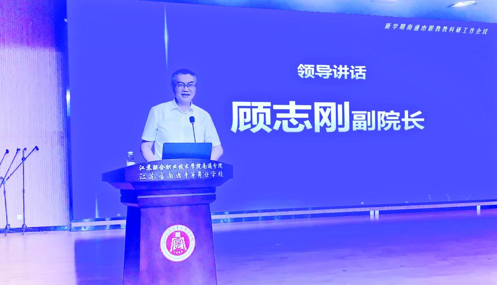 会上,南通市教育局许新海副局长在讲话中充分肯定全市职教成绩,并为未来发展指明三大方向:着眼未来拥抱变革、聚焦大领域推进专业群建设、把握时代特征深化内涵发展。南通市教科院顾志刚副院长提出"进化、纯化、内化"的教科研工作思路,强调要将教科研成果真正转化为育人实效。职教研究室刘兵兵主任部署了新学期工作要点,明确以"提质固优、融合创新、转型升级"为主线推进各项工作。