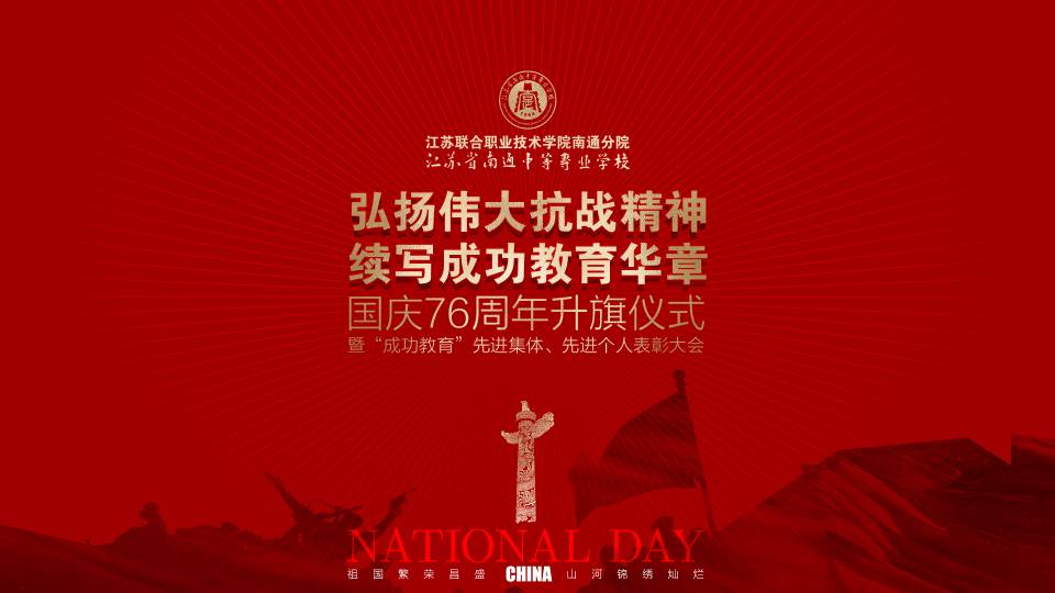 9月30日上午,我校在学校体育馆举行以“弘扬伟大抗战精神,续写成功教育华章”为主题的国庆76周年升旗仪式暨第十四届“成功教育”先进集体、先进个人表彰大会。校领导班子成员、校关工委领导、家长代表及全校师生参加这一盛大活动。
