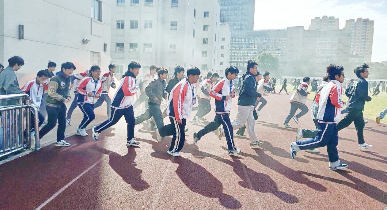 上午9时40分,预先警报准时拉响。演练正式开始后,全体学生在班主任及任课教师的沉着指挥下,严格遵守“有序优先、快速跟进”的原则,迅速从教学楼、实训楼等场所向安全区域转移。疏散过程中,各班体育委员在侧护导,教师在后督促,整个环节紧张而不慌乱,有序且高效。仅用时6分钟,所有师生均已安全撤离至大操场指定集结区域,并经班主任快速清点,确认全员安全到位。