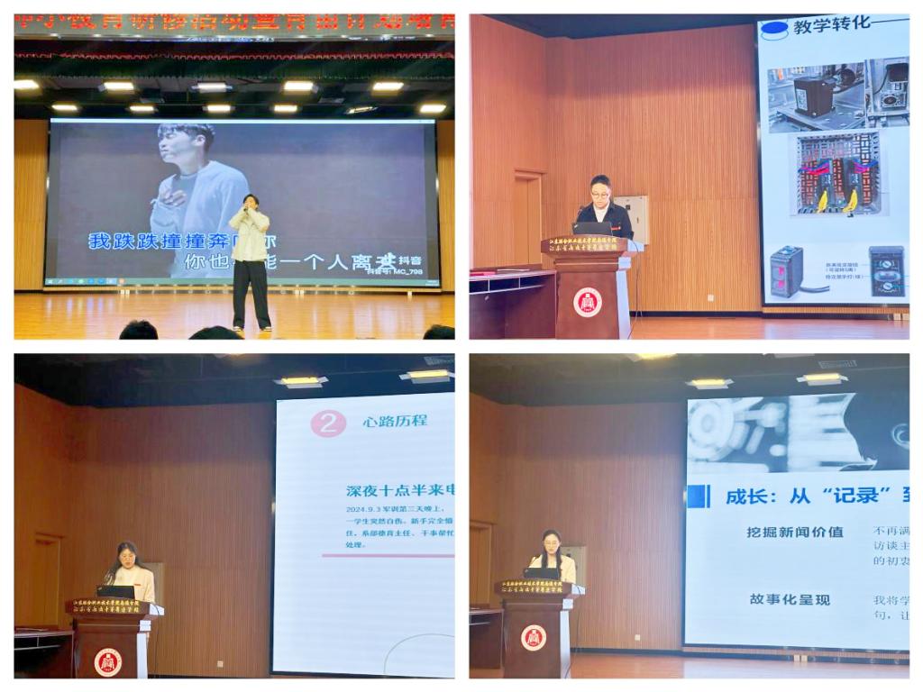 在风采展示后,科研处施捷处长为青年教师送上成长箴言,鼓励大家坚守教育初心,勇于探索创新。全体24级“青苗”教师以慷慨激昂的集体朗诵《青春礼赞》,抒发了献身职教、不负韶华的壮志豪情。25级新“青苗”代表蔡慧琳的发言,则道出了新教师对教育事业的憧憬与决心。