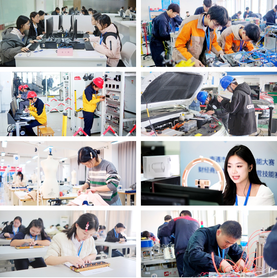 赛项紧扣南通市产业发展需求与职业教育改革方向,兼具前瞻性与实用性,涵盖了先进制造、能源电力、安全生产、电子信息、数字经济、财经商贸、时尚创意、新能源汽车等多个重要领域,包括通用机电设备安装与调试、新型电力系统运行与维护、矿井灾害应急救援、电子产品设计与应用、移动应用与开发、电子商务运营、智能财税基本技能、服装设计与工艺、新能源汽车维修等。