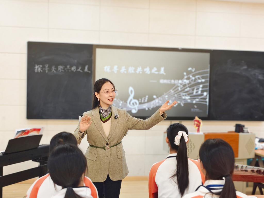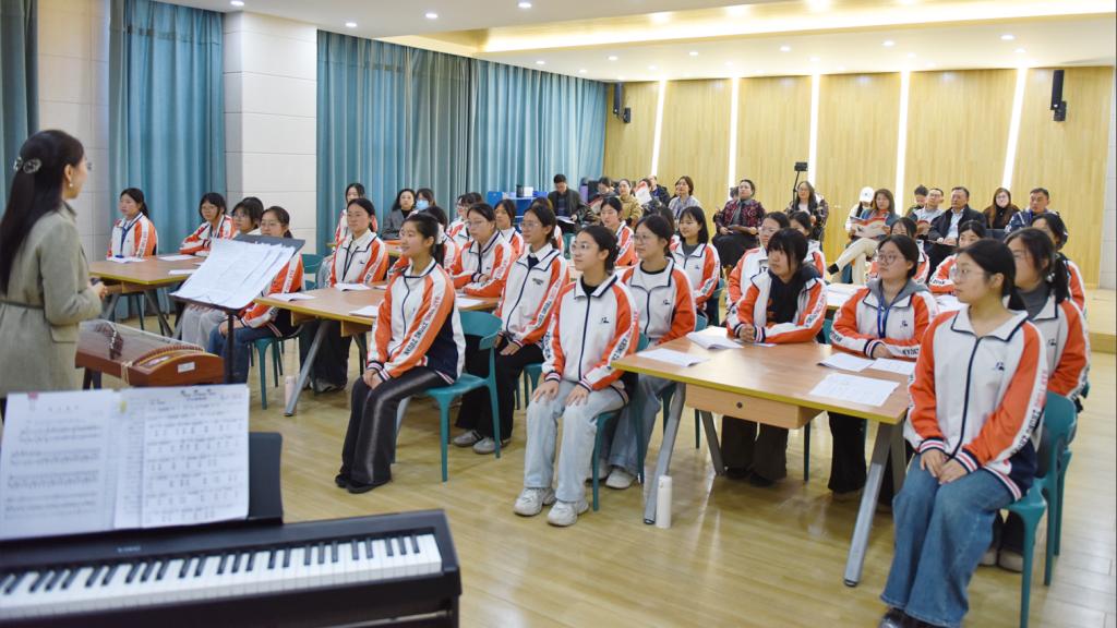 在随后的教学主张汇报中,吴老师以“以乐育美 立美润心”为主题,系统梳理了自己二十年的从教思考与实践脉络。她提出,美育不仅是艺术技能的传授,更是通过音乐实践引导学生感知美、表现美、创造美,进而实现情感浸润、人格塑造的育人过程,完成从“授技”到“育人”的升华。