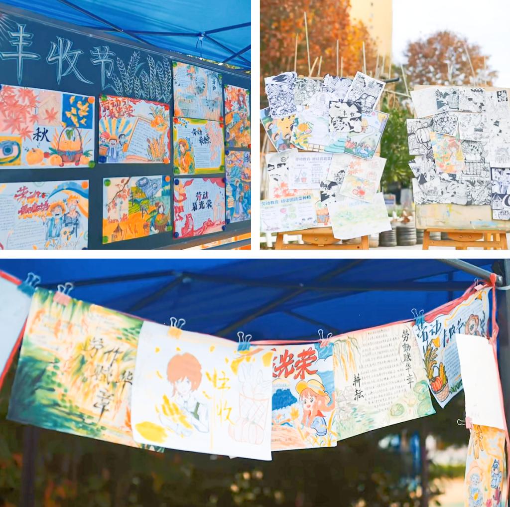各系精心搭建的专属展台各具特色,吸引着师生与家长,现场人头攒动、热闹非凡。每个展台前都悬挂着原创主题标语,“耕读润心、劳动赋能”“以劳育美、以技立身”等标语既贴合系部特色,又彰显劳动精神。成果展示区里,作物实物、干燥种子标本、劳动过程照片视频琳琅满目,艺术设计系的丰收主题绘画、机电技术系的模块化互动小项目等让人眼前一亮。经过全体家长代表、教师代表和学生代表的现场投票评选,机械工程系荣获“丰收之星”卓越成果系称号,信息工程系摘得“奇思妙想”创意先锋系桂冠。