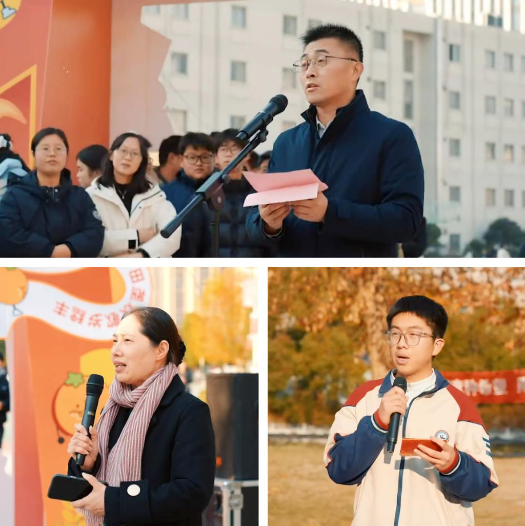活动伊始,“丰收启航”开场仪式点燃了全场的热烈氛围。机电技术系朱湛同学担任主持工作,清晰介绍了活动流程。学工处处长姚晓晶老师深刻阐释了“耕读劳育”与丰收节的内在联系与深远意义。朱建锋副校长在随后的致辞中,对莅临现场的各位嘉宾表示诚挚欢迎,并向辛勤付出的全体师生致以崇高敬意。他强调,丰收节既是对“耕读园”作物种植成果的集中呈现,更是同学们劳动素养与实践能力的综合展示,鼓励大家将劳动中所培育的毅力与智慧转化为个人成长的不竭动力。艺术设计系学生代表付家源同学分享了运用专业知识规划种植片区的实践经历,其讲述生动真切,字里行间洋溢着对劳动的深切热爱与丰收的由衷自豪,引发全场共鸣。