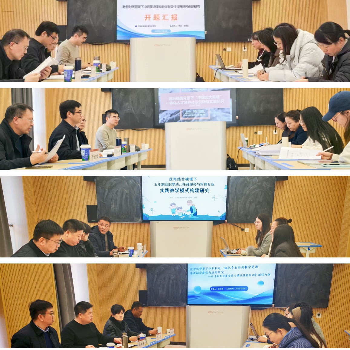 在公开开题展示环节,南通中专施强、吴君垚老师共同主持的课题《“精准思政”视域下五年制高职思政课教学改革实践研究》,以及如皋中专薛振华、陆家燕老师主持的课题《“大思政”视域下AI赋能五年制高职数字化教学资源的开发与应用研究》进行了现场汇报。专家组从研究聚焦度、逻辑严密性、创新性与可行性等方面进行了精准点评,提出了建设性意见。