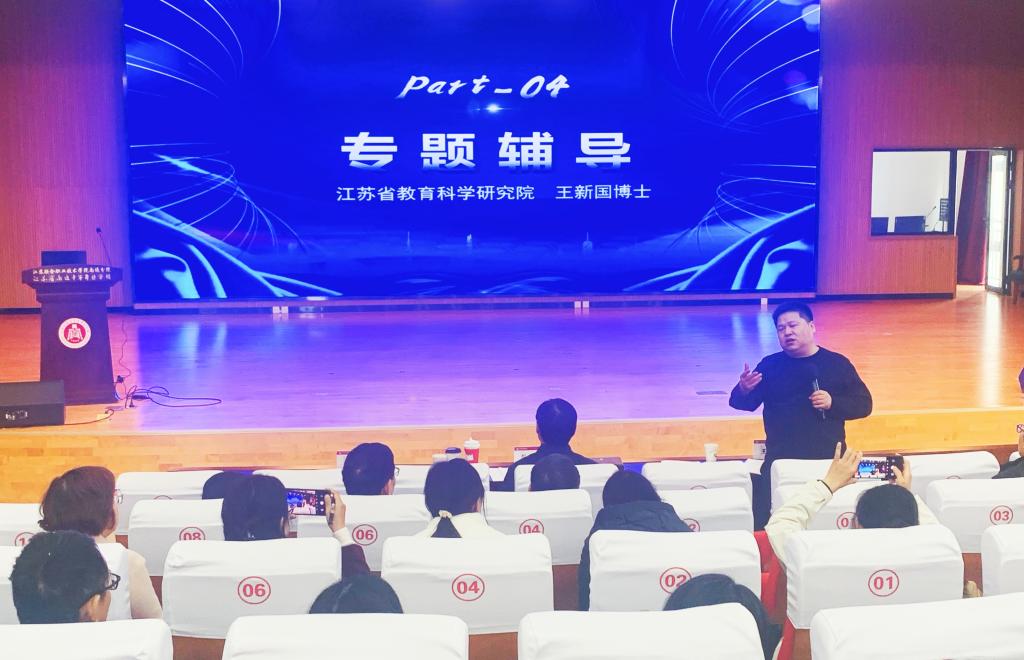 随后,江苏省教科院王新国主任作了题为《从研究迈向实践的学术探索路径及实践》的专题辅导报告,系统梳理了教科研课题从设计到成果转化的关键环节,为提升教师科研素养提供了指导。