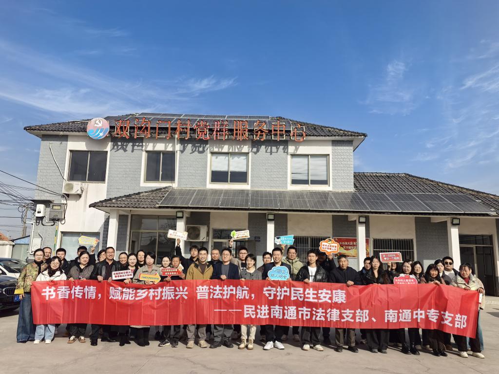 为深入贯彻党的二十大精神,构建“大思政”育人格局,我校党委统筹统战资源,联合民进基层组织共同拓展校村共建内涵。在前期与双沟门村成功建立党建共建基地的基础上,12月9日,民进南通中专支部联合南通市法律支部再赴双沟门村,开展“书香传情赋能乡村振兴,普法护航守护民生安康”主题活动。