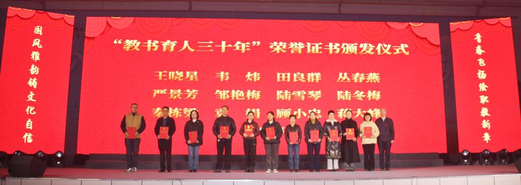 第二篇章中,机电技术系的《青花瓷》巧妙结合古典与青春,信息工程系的相声《出口成章》幽默风趣,艺术设计系的《花瑶女》绚丽多姿。第三篇章以财经商贸系的茶艺表演《古韵茶香》开场,展示了专业技能与文化素养的融合;机械工程系学生的歌曲《追光者》唱出了职教学子的梦想。活动特别设置了致敬环节,为从教三十年的教师颁发荣誉证书,表彰他们数十载的教育坚守。