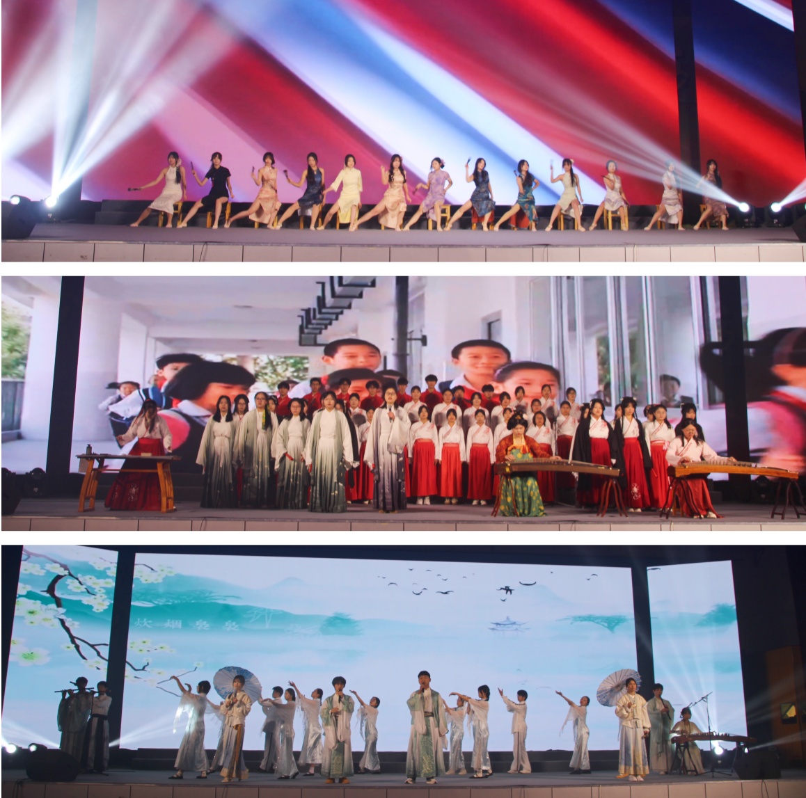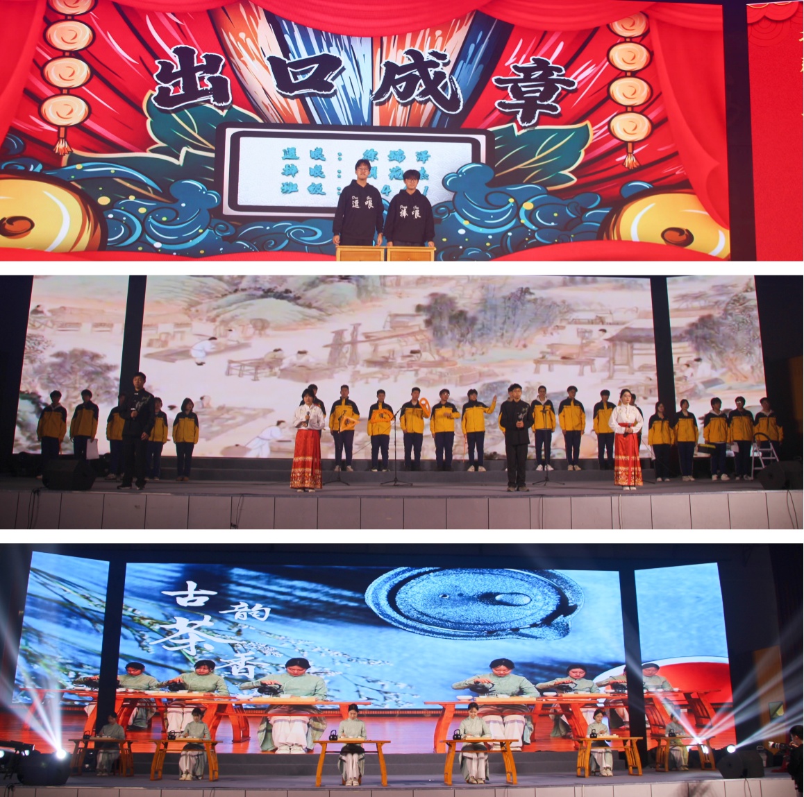 整场演出内容丰富,分为“雅韵传薪 铸文化自信”“青春飞扬 创时代新声”“匠心筑梦 绘职教新章”三大篇章。机械工程系的舞蹈《桨起砺行》展现力与美的融合,信息工程系的国风爵士《金陵十三钗》以现代舞姿诠释历史,艺术设计系的黎族舞蹈《声声回响》带来清新自然之风,财经商贸系的朗诵《唐诗里的中国人》引发深沉文化共鸣。