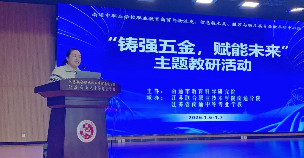 1月6日至7日,由南通市教育科学研究院主办、我校承办的南通市职业学校商贸与物流类、信息技术类、服装与幼儿类专业主题教研活动圆满落幕。本次活动成功搭建了全市职教同仁深度对话的高位平台,汇聚了来自兄弟院校、科研机构及行业领域的领导、专家与骨干教师,通过理念共享、成果互鉴与实践切磋,共同探索“五金”建设与职教改革的有效路径,我校作为承办方在其中发挥了重要的组织与示范作用。