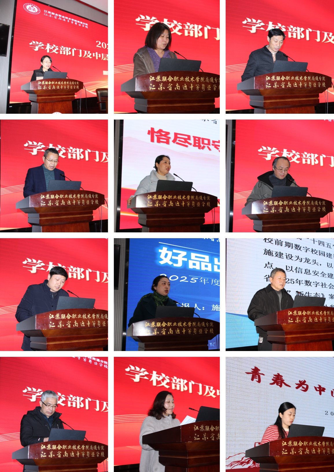 会议期间,17位部门、系部负责人依次进行现场述职。大家紧扣学校年度中心工作与发展目标,聚焦党建引领、立德树人、教学改革、科研创新、师资队伍建设、产教融合深化、招生就业推进、信息化赋能、社会服务拓展等核心领域,全面汇报了本部门、本系部年度目标任务的完成情况。述职内容实事求是,既充分展示了工作中的特色亮点与显著成效,也坦诚深入地剖析了存在的问题与不足,并结合学校“十五五”发展规划与战略部署,提出了清晰的改进思路与切实可行的未来工作举措,充分展现了学校中层干部队伍履职担当、锐意进取的精神风貌和求真务实、狠抓落实的工作作风。