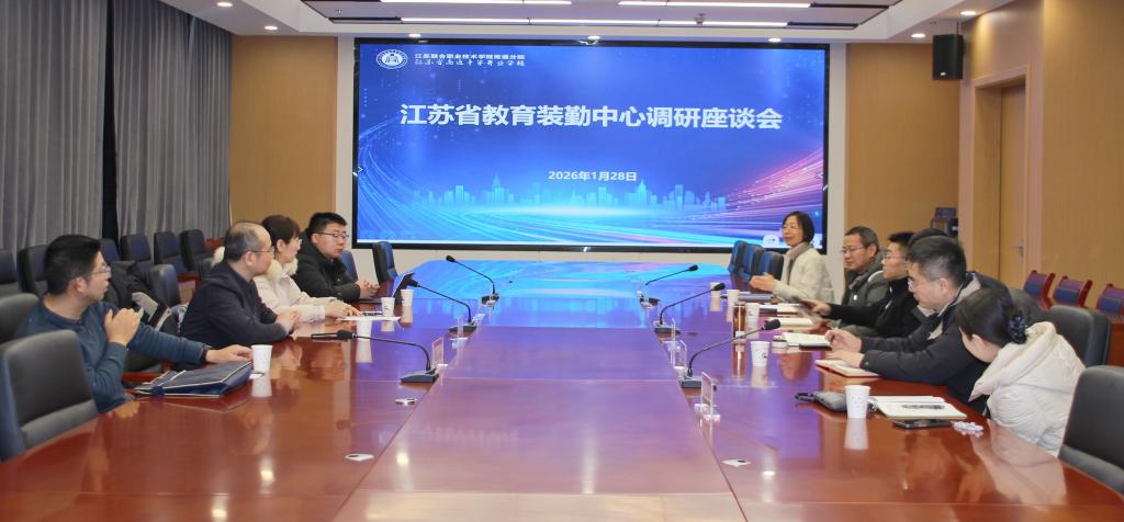 1月28日上午,江苏省教育装勤中心副主任万炜,发展规划科科长孙霞,装备管理科科长华南红、副科长梁鹏一行来我校,就心理健康教育工作和“江苏省中小学生实验能力大赛”拓展至中职学校的可行性进行实地调研。校党委书记李明生,校长万军,副校长陈建明、朱建锋及相关部门负责人陪同调研。