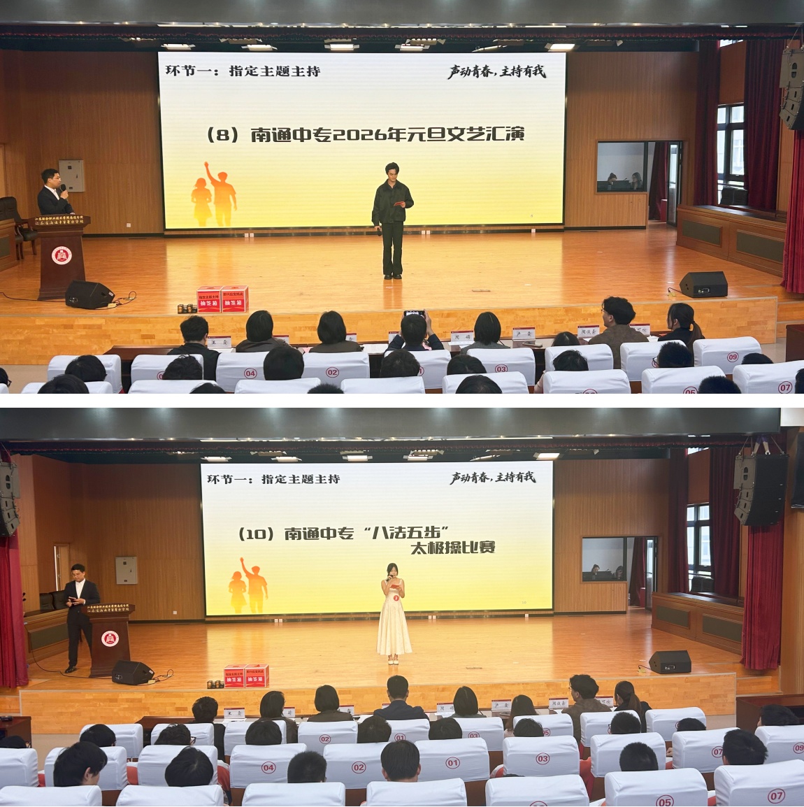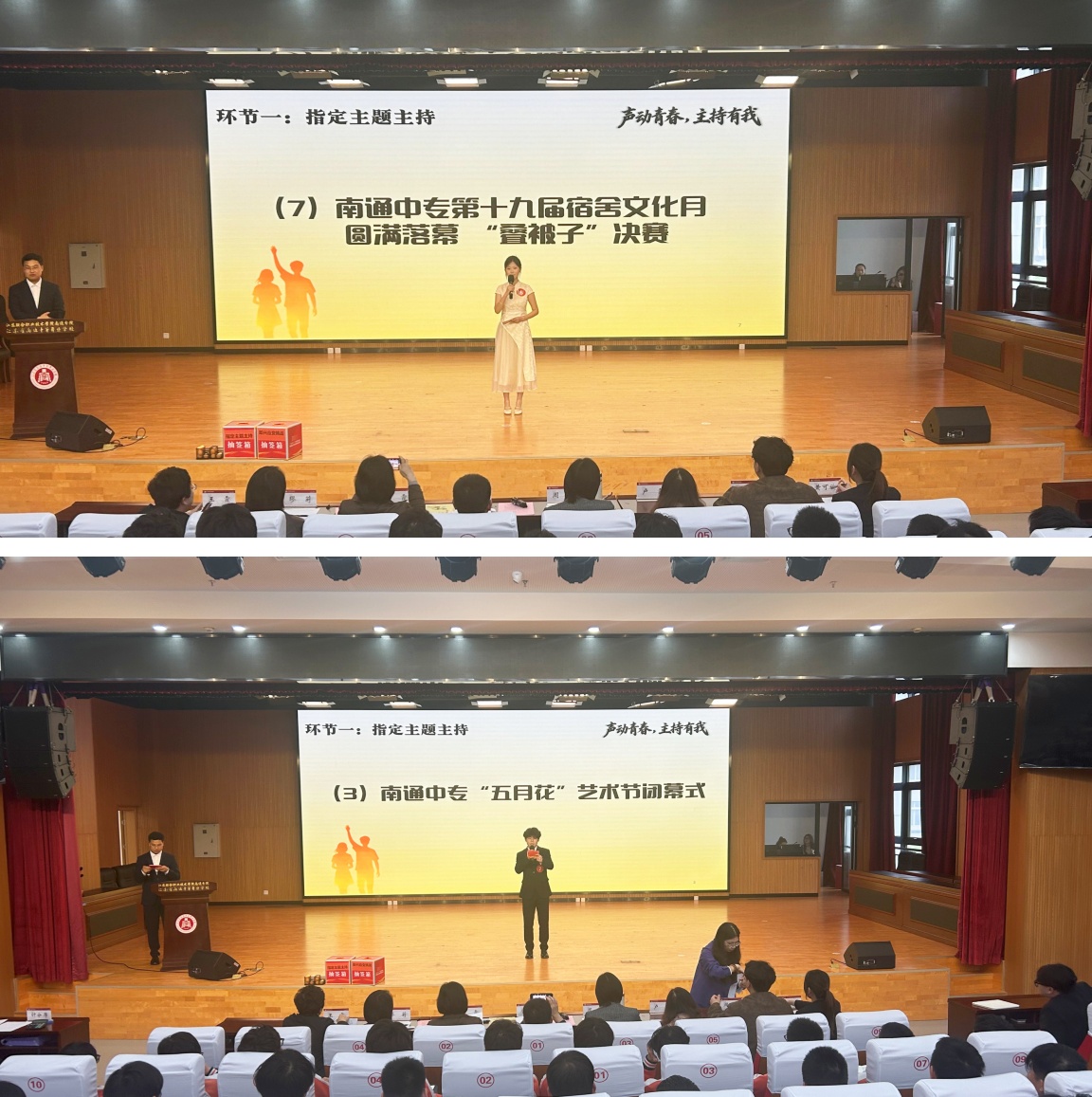 本次大赛自3月启动,共吸引72名同学报名参赛。经过层层选拔,10名选手脱颖而出晋级决赛。比赛设置指定主题主持、即兴应变挑战、才艺展示三个环节,全面考察选手的语言表达、临场应变与综合素养。指定主持时,选手们精神饱满、仪态大方,或沉稳大气,或灵动鲜活,用流畅表达与真诚情感展现扎实功底与青春活力。即兴应变中,大家沉着应对、思路清晰,尽显应变能力。才艺展示更是精彩纷呈,赢得阵阵喝彩。活动间隙,主持人与现场观众开展趣味互动,同学们踊跃参与、积极回应,现场气氛热烈活跃,掌声与欢笑声不断。