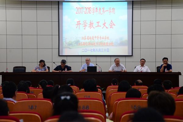 新闻资讯 当前位置: 首页 > 新闻资讯 > 学校要闻 > 正文 我校召开新学期开学教工大会 浏览量:时间:2017-08-30 8月30日上午,我校在报告厅召开新学期开学教工大会。 校党委陈情书记主持会议。他向教职工介绍了新到我校上任的李明生校长和新入职我校的7位老师。全体教职工用热烈的掌声向他们表示欢迎。 李明生校长讲话。他首先从党建工作、中层干部选聘、暑期培训、大赛集训及参赛、学生工作、招生就业培训工作、智慧校园建设、后勤服务等方面总结了暑期学校主要工作,并通报了我校被确定为首批江苏省现代化示范性职业学校、施捷老师被评为“2017江苏最美职教教师”等我校在暑期取得的12项主要荣誉。 接着,李校长对学校本学期工作作了部署。他说,本学期及今后一个较长时期学校将重点实施三大工程:质量提升工程、德育品牌工程、校园建设工程。围绕这三大工程本学期应着重做好以下七个方面的工作:全面落实从严治党,优化学校管理机制;推进教学诊改工作,全面提升培养质量;抓好各类项目建设,提升学校办学实力;优化德育管理机制,培育校园文化品牌;强化职教科学研究,塑造教师精英团队;加强招就培训工作,拓展社会办学渠道;提升服务保障水平,创建文明和谐校园。 最后,李校长布置了学校9月份的主要工作。 陈书记就开学工作提出了要求。他要求开好部门开学工作会议,整理好校园环境,做好大后勤保障工作,进行全面的安全工作检查,以主人翁的意识、主动有为的态度做好开学各项工作。 分享到: