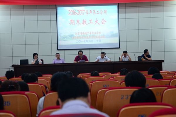 新闻资讯 当前位置: 首页 > 新闻资讯 > 学校要闻 > 正文 我校召开期末教工大会 浏览量:时间:2017-07-02 6月30日下午,我校在报告厅召开2016-2017学年第二学期期末教工大会。全校教职工出席会议。 许振华校长对学校一学期的工作作了总结。他首先报告了我校一学期以来取得的主要办学成绩。我校江苏省现代化示范性职业学校建设取得重大突破,目前已通过网评,被免于现场验收,在通过答辩后即将被批准建成;学校被认定为江苏省职业学校智慧校园;我校客户服务专业群被认定为江苏省职业学校现代化专业群;我校计算机网络技术实训基地被认定为江苏省职业学校现代化实训基地;我校在2017年度江苏省技能大赛中共获得一等奖5个、二等奖11个和三等奖30个,6位学生参加全国职业院校三个项目的技能大赛,共获得2金1银1铜,无论参赛项目数、参赛人数还是获奖数量均创我校历史新高;我校5位老师参加省教学大赛,共获得一等奖1个、二等奖3个、三等奖1个,获奖情况位居全省第五名;施捷醒目知色服装设计名师工作室获评省职业教育名师工作室,吴晓进中职数学名师工作室被评为南通市第三批中职学校名师工作室;我校施捷、陈建明、李跃兵主持的三项成果被推荐参评省职教教学成果一等奖,丛开源作为核心成员、我校作为主要参与学校参与省教科院冯志军主任主持的教学成果,申报参评省教学成果特等奖;施捷老师在全省“最美职教人”评选中进入前20名;陶永华老师的线描作品《海洋与生命》在首届联合国海洋大会上展出。接着从党建工作、项目建设、质量提升、德育改革、招生就业、社会培训、后勤服务和综治群团工作等方面对学校一学期来的工作作了总结,并对学校暑期和下学期开学工作作了部署。 陈情书记主持会议并就暑期师生安全、新生入学、值班护校、遵守五严规定等提出了要求。 分享到: