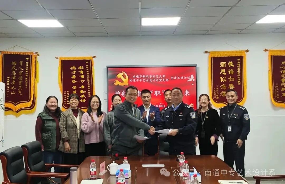11月10日下午,南通中专艺术设计系党支部党员代表在副校长朱建锋的带领下,赴通州区新辰学校开展党建共建活动并举行签约仪式,正式开启两校协同育人的新篇章。
