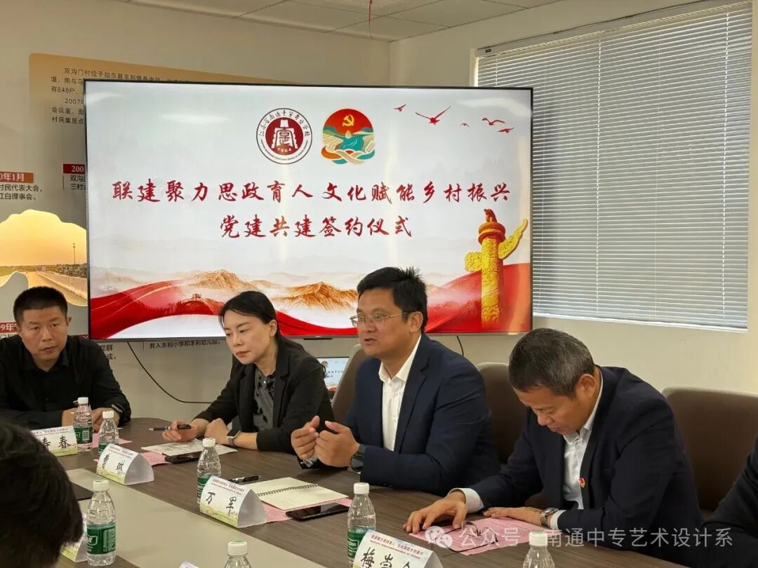 10月31日,艺术设计系党支部、财经商贸系党支部赴如东县丰利镇双沟门村,成功举行党建共建座谈会暨签约仪式,以党建引领开启校地协同发展新篇章。