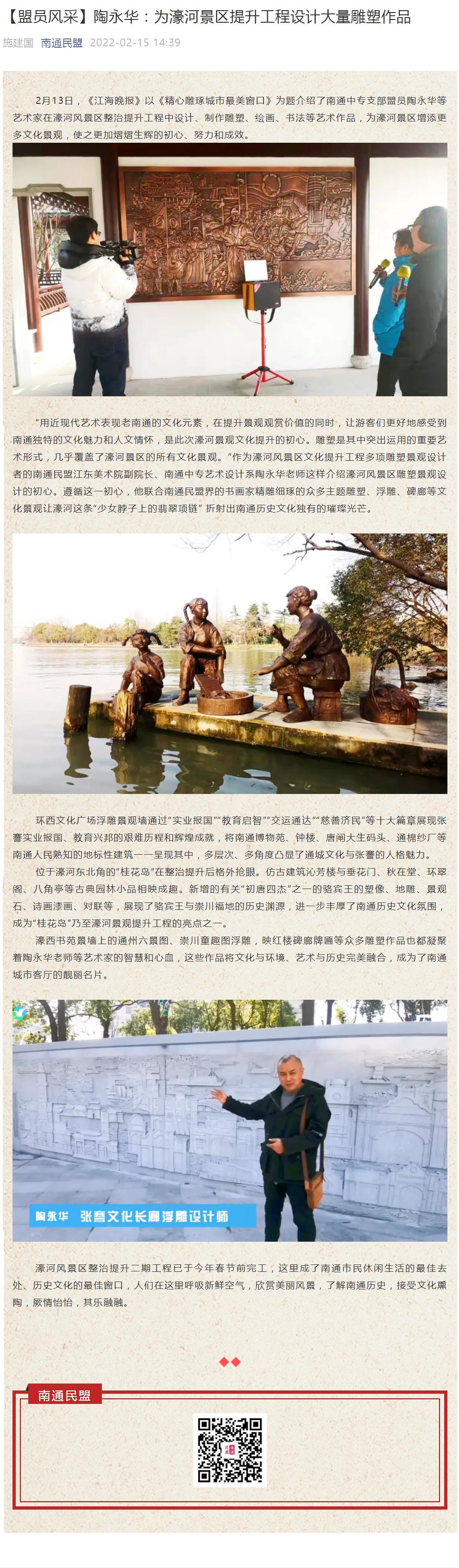 新闻资讯 当前位置: 首页 > 新闻资讯 > 媒体聚焦 > 正文 【南通民盟】【盟员风采】陶永华:为濠河景区提升工程设计大量雕塑作品 浏览量:时间:2022-02-16 来源:南通民盟 原文链接 分享到:
