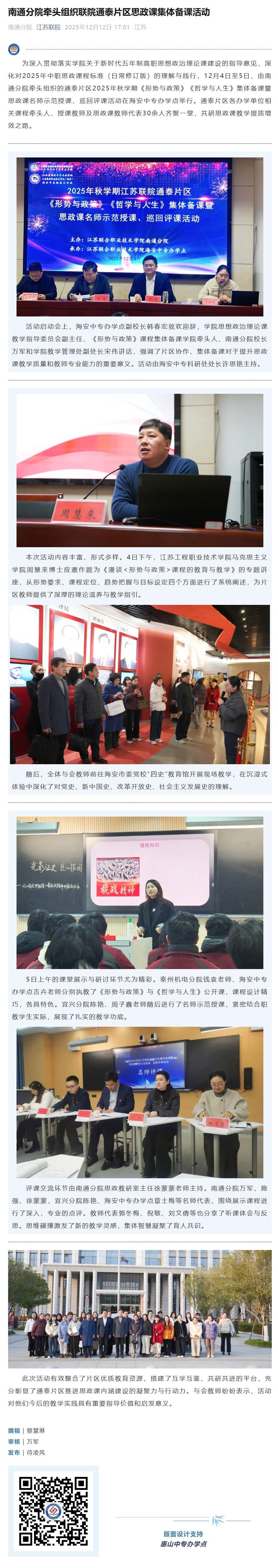 新闻资讯 当前位置: 首页 > 新闻资讯 > 媒体聚焦 > 正文 【江苏联院】南通分院牵头组织联院通泰片区思政课集体备课活动 浏览量:时间:2025-12-16 来源:江苏联院 原文链接:https://mp.weixin.qq.com/s/lHVpZY1KFzDmIYsslGsW0g 分享到: